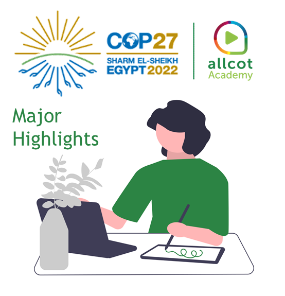 COP27 major highlight is a full document containing a detailed description about COP27 discussions day by day. You will find some topics such as :